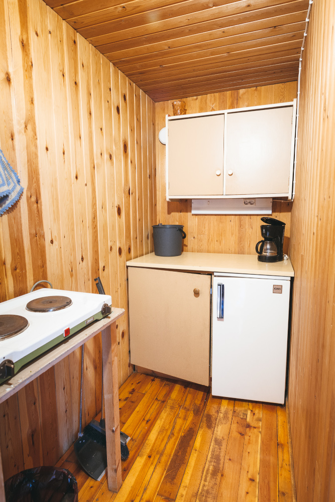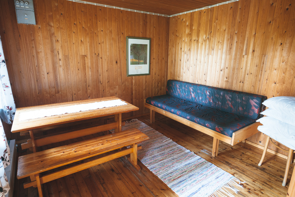 4 hlö. Levitettävä sohva, kerrossänky alkovissa.