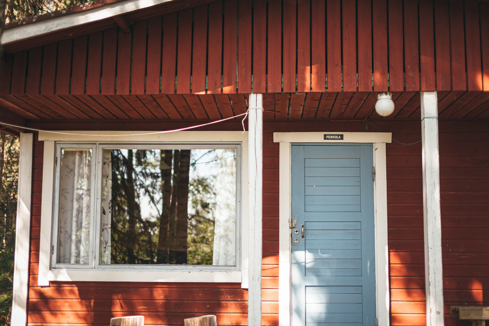 Nuotipaikka mökin edessä.