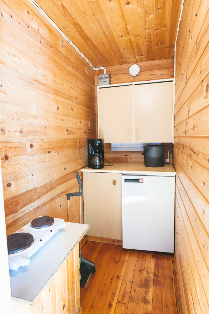 4 hlö. Levitettävä sohva, kerrossänky alkovissa.