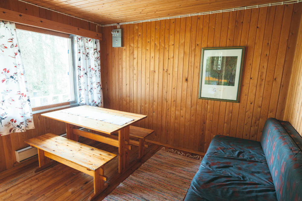 4 hlö. Levitettävä sohva, kerrossänky alkovissa.