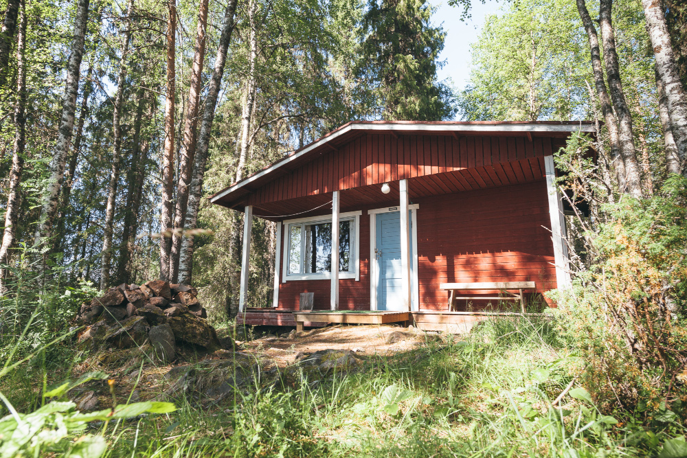 Nuotipaikka mökin edessä.