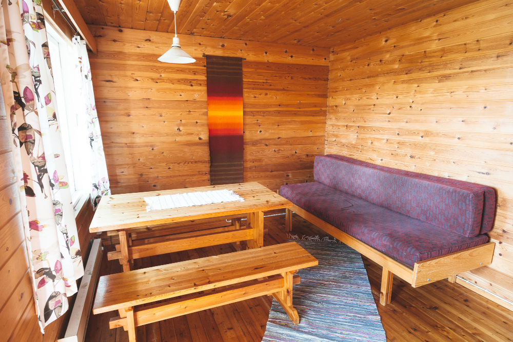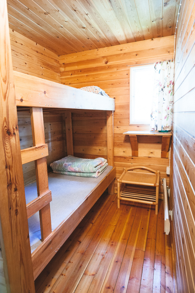 4 hlö. Levitettävä sohva, kerrossänky alkovissa.